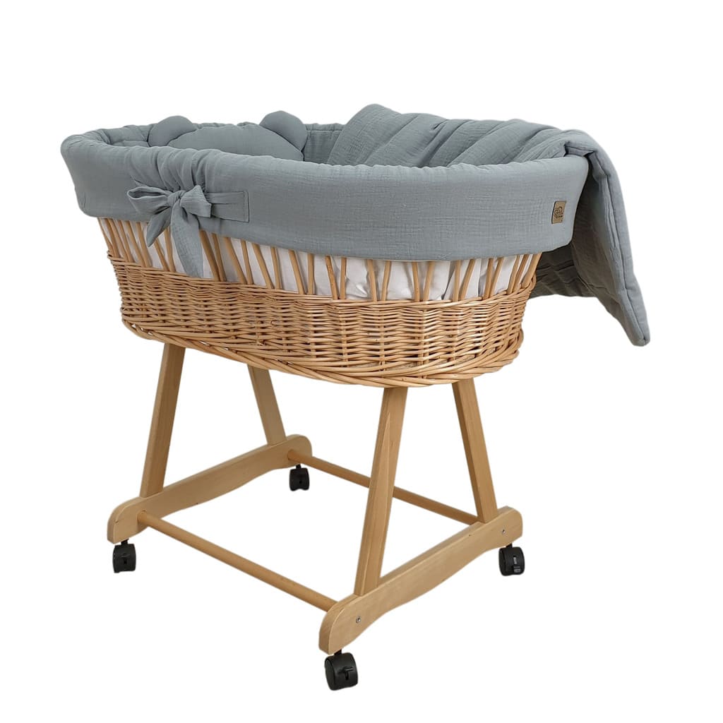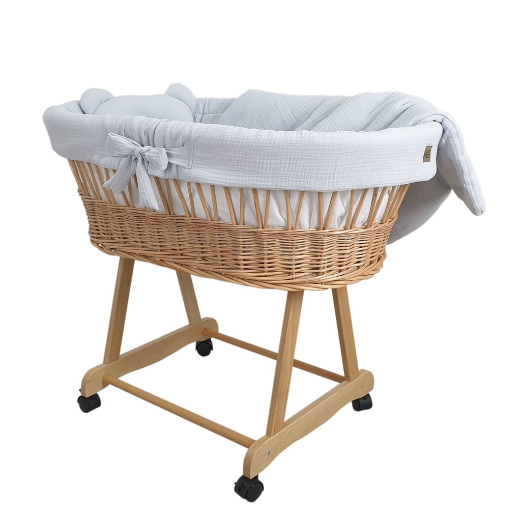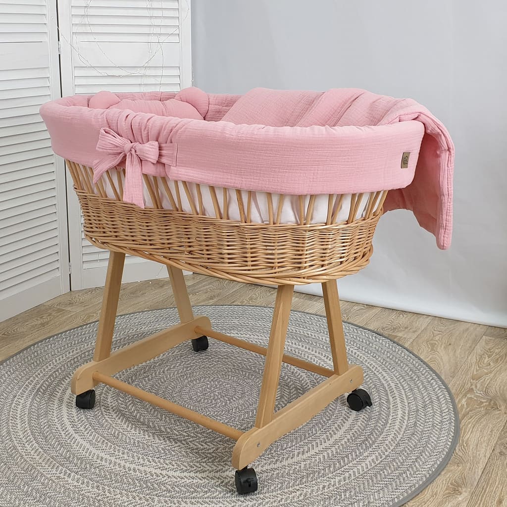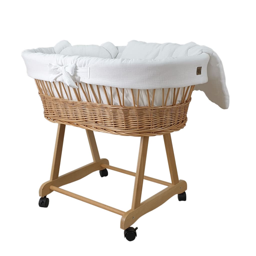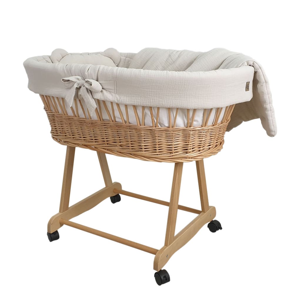 Kosz Mojżesza naturalny muślinowy na kólkach, zestaw dla niemowląt z pościelą (1)