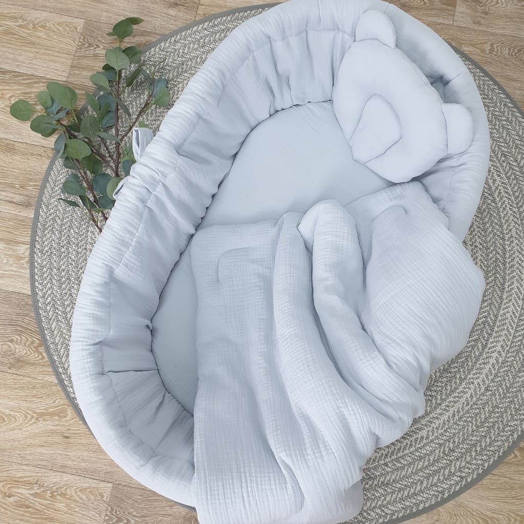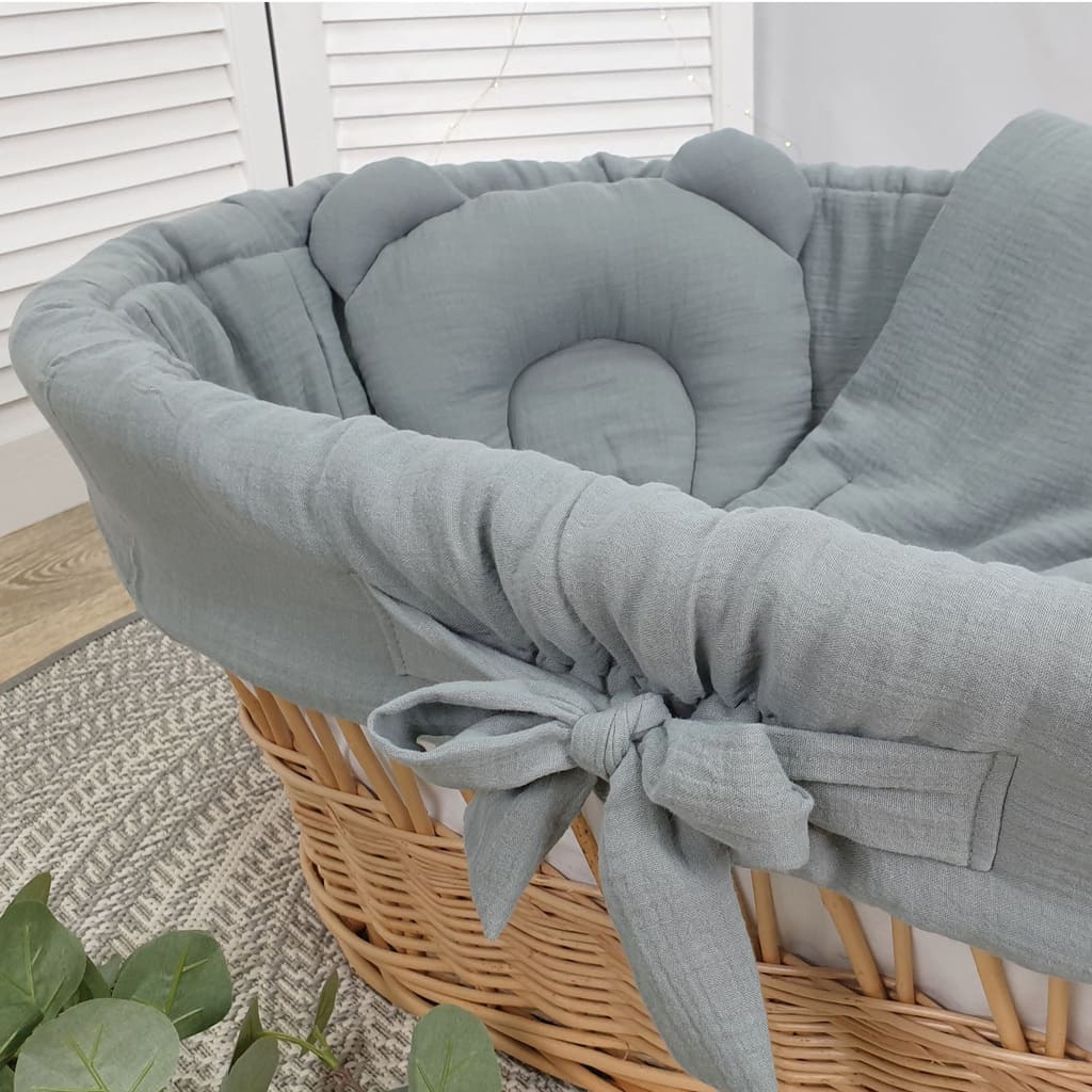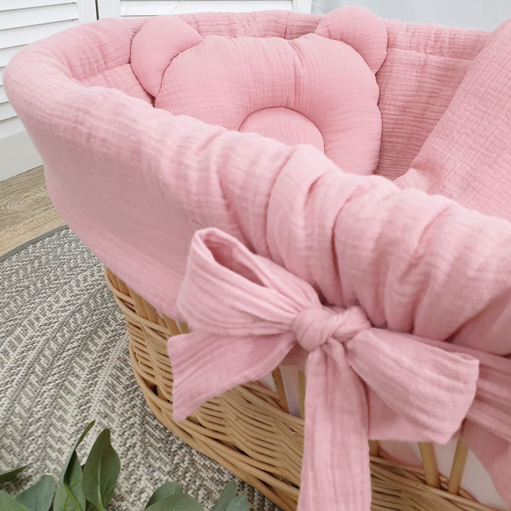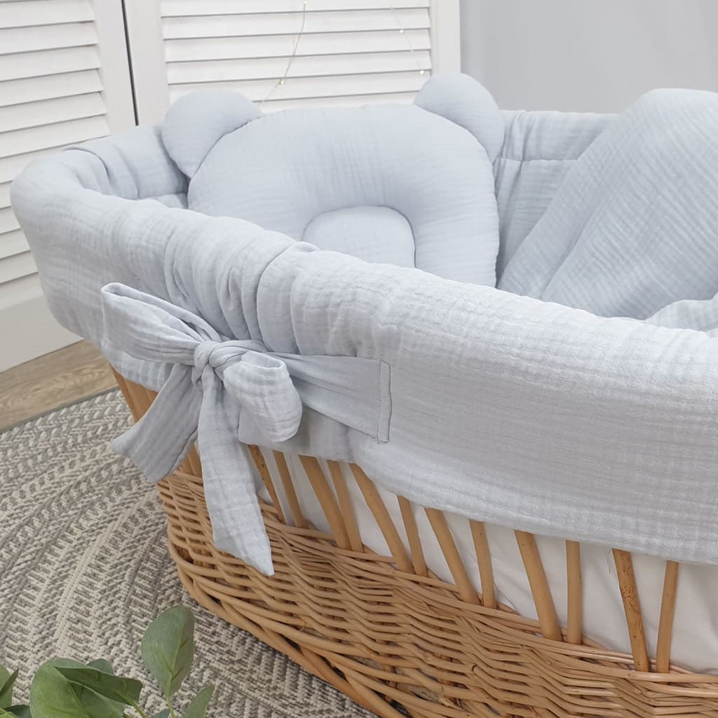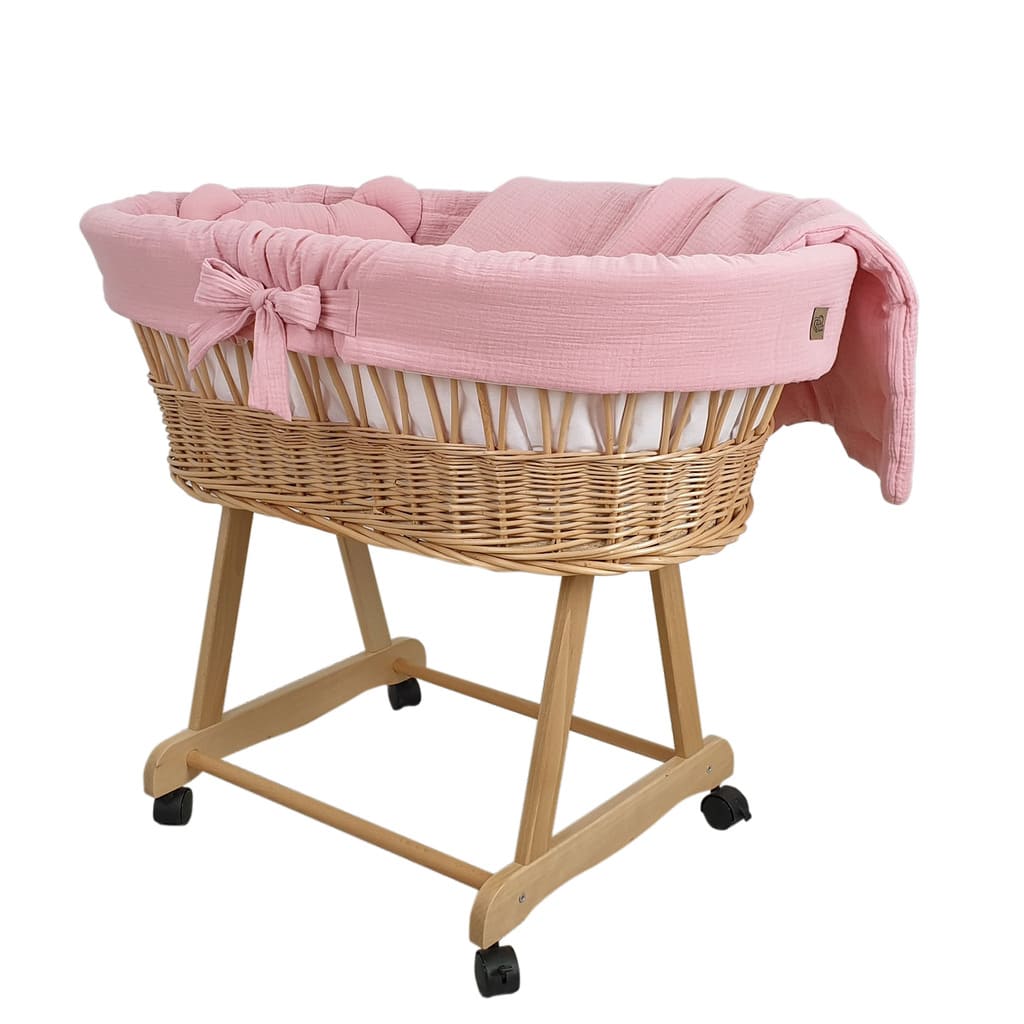 Kosz Mojżesza naturalny muślinowy na kólkach, zestaw dla niemowląt z pościelą (1)
