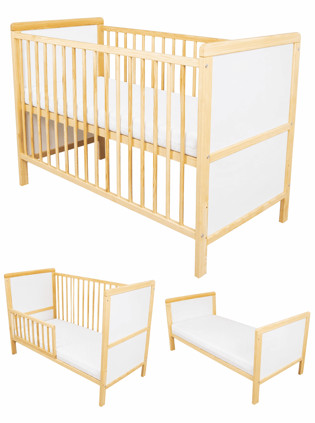 Zestaw zawiera: łóżeczko 3w1 + materac piankowy
